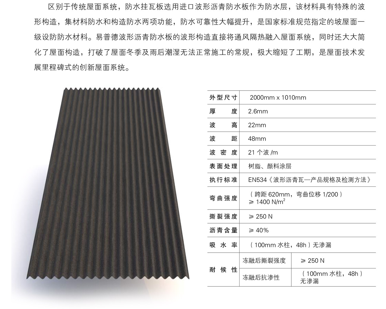 借鑒歐洲坡屋面防水理念,將平面防水改為立體防水,采用新型防水板材料,將材料防水和構(gòu)造防水于一身,配合屋面系統(tǒng)組件,實現(xiàn)全天候全干作業(yè)。節(jié)省了屋面各類保護(hù)層次,打破了屋面冬季及雨后陰濕無法施工的常規(guī),縮短了工期,提升系統(tǒng)安全性能。